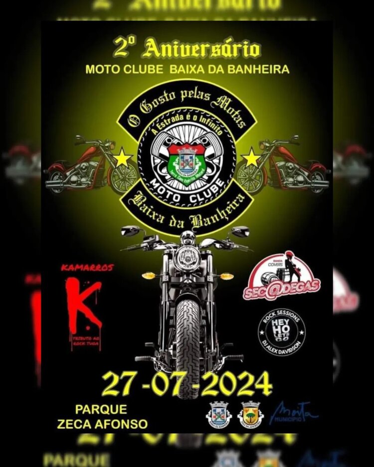 2° Aniversário do Moto Clube da Baixa da Banheira, dia 27 de julho a partir das 21h30 no Coreto do Parque José Afonso na Baixa da Banheira, com Bandas ao vivo.
