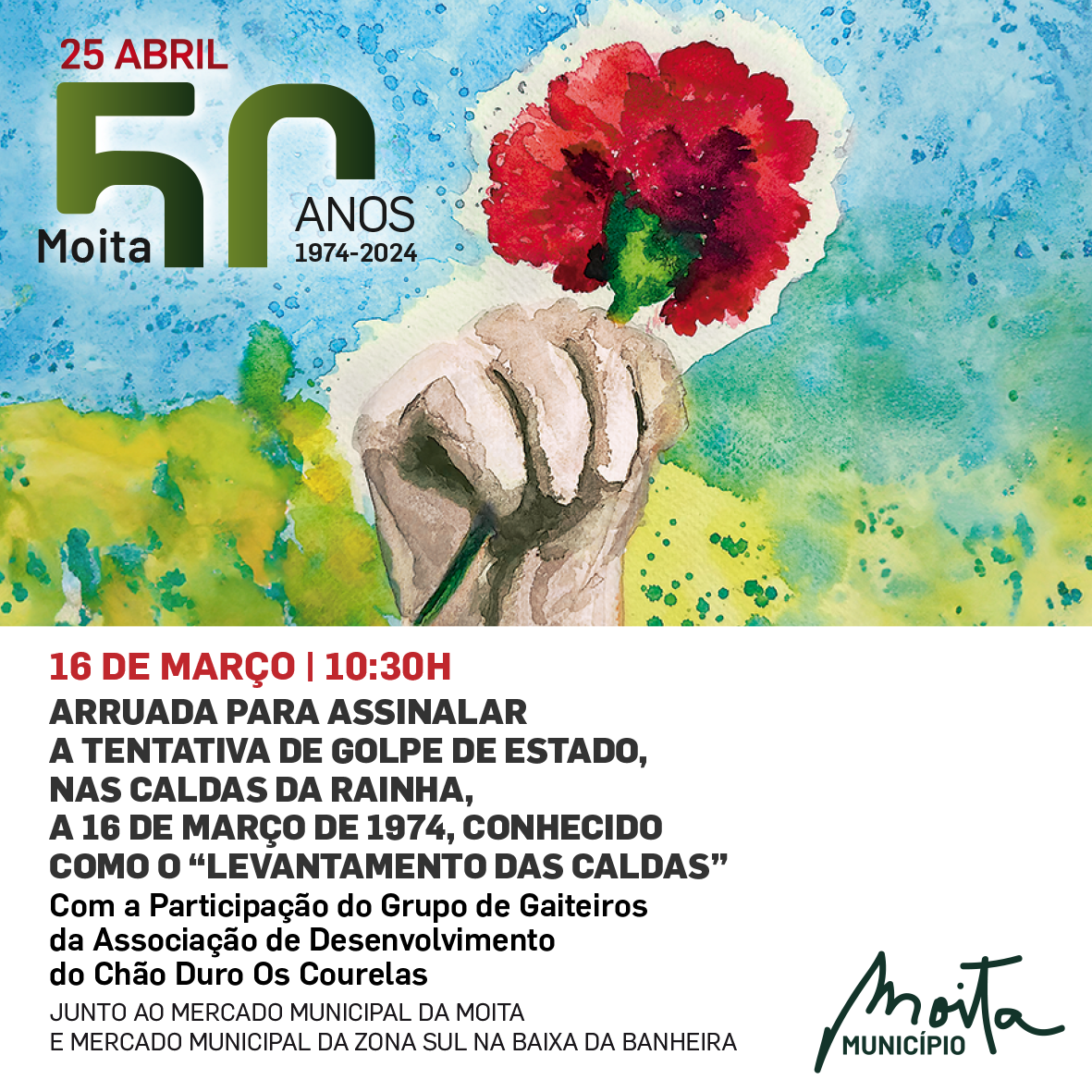 Esta ação, integrada nas comemorações dos 50 anos do 25 de Abril de 1974, conta com a participação do Grupo de Gaiteiros da Associação de Desenvolvimento do Chão Duro "Os Courelas".