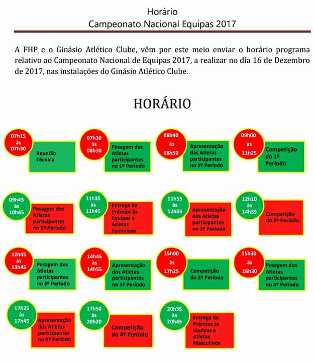 - A apresentação e competição do 2º, 3º e 4º períodos poderão ser antecipados caso o desenrolar da competição assim o permita.
