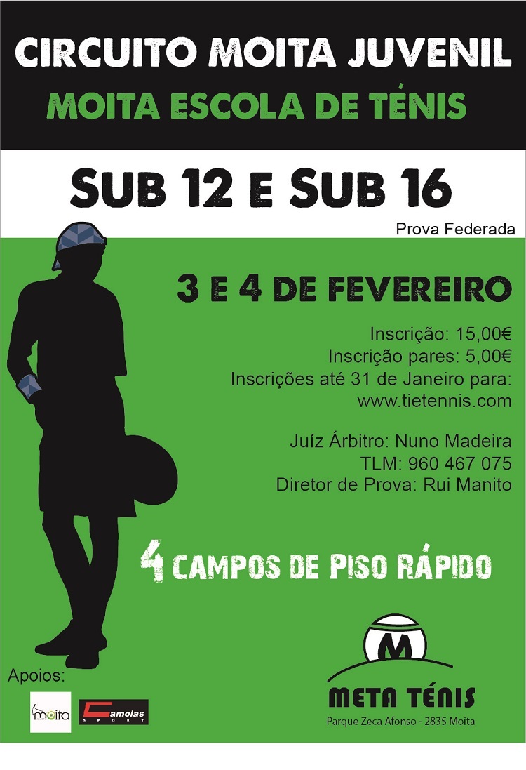 A Moita Escola de Ténis irá organizar o Circuito Moita juvenil C nos Escalões Sub 12 e Sub 16.