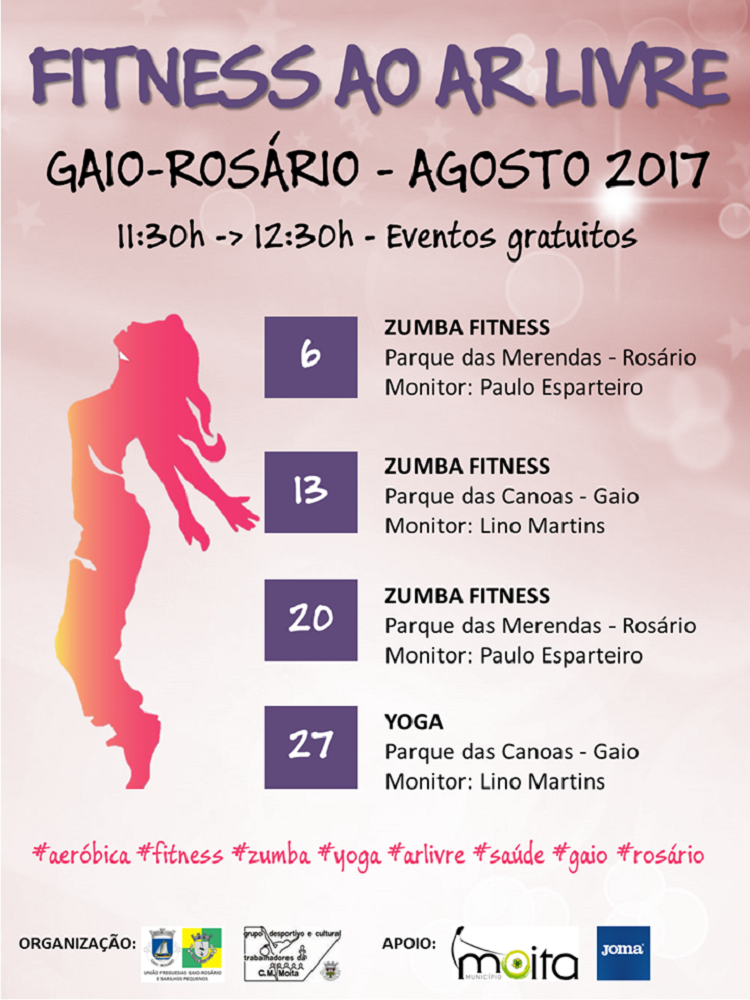 O Grupo Desportivo e Cultural dos Trabalhadores da Câmara Municipal da Moita vai continuar a realizar em Agosto, as aulas, nos dias 6, 13, 20 e 27, às 11h30, no Parque das Canoas e Parque das Merendas, no Gaio-Rosário.