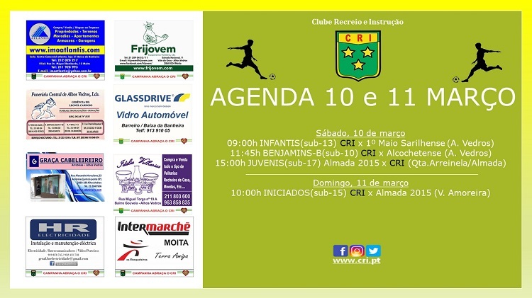 09:00h INFANTIS(sub-13) CRI x 1º Maio Sarilhense (A. Vedros)