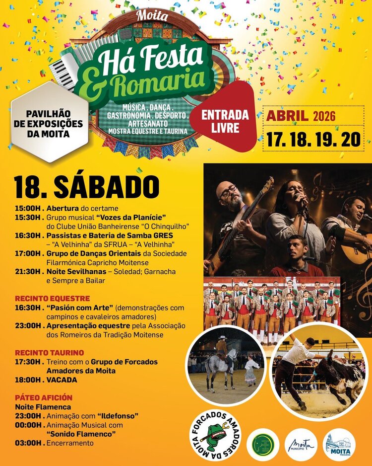 Como já é habitual, a festa na Moita começa no fim-de-semana que antecede a partida da Romaria a Cavalo e que acontece no dia 21 de abril.