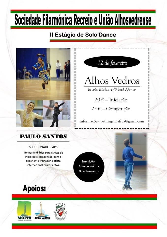 A Sociedade Filarmónica Recreio e União Alhosvedrense "A Velhinha, com o apoio da Câmara Municipal da Moita e com o intuito de promover, dinamizar e elevar o nível da modalidade, teve a iniciativa de organizar um estágio de patinagem artística na vertente de Solo Dance com o técnico e selecionador distrital Paulo Santos.