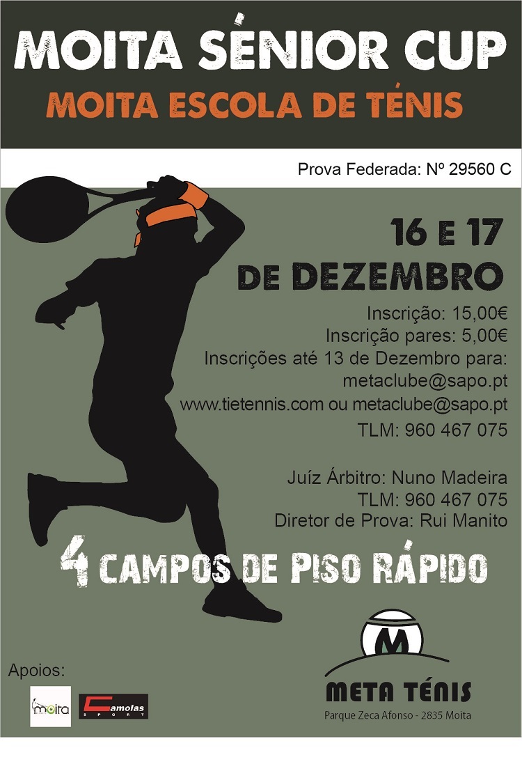 A Moita escola de Tenis (Meta) organiza o Torneio Moita Seniores Cup nas vertentes Sing e Pares, Masculina e Feminina.