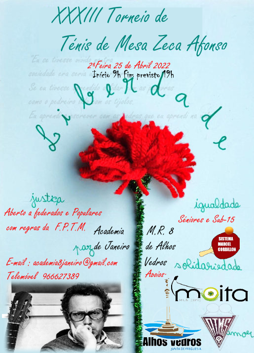 📌 Comemorações do 48º Aniversário do 25 de Abril | XXXIII Torneio de Ténis de Mesa Zeca Afonso