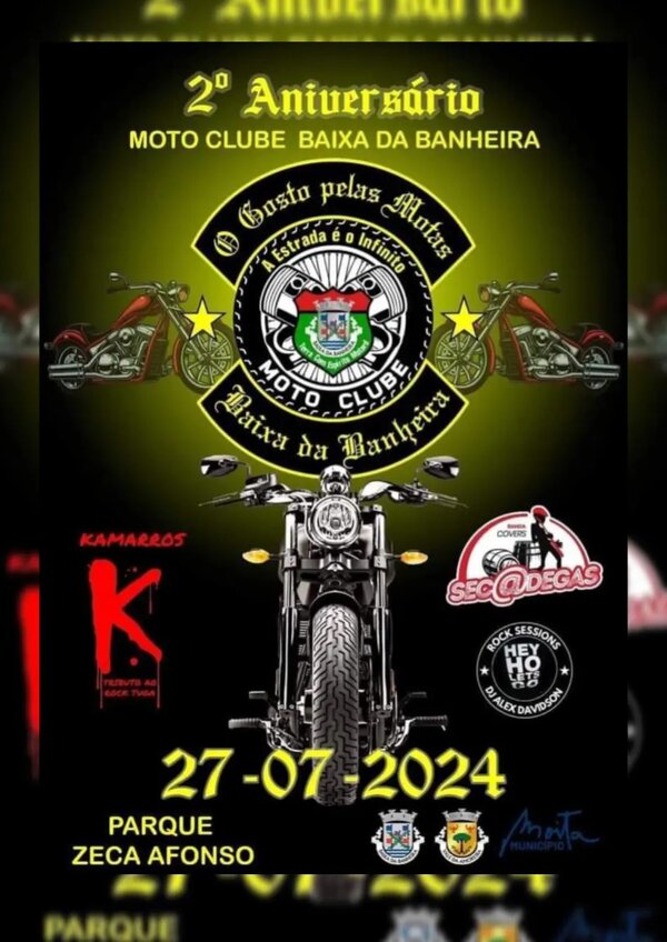 2° Aniversário do Moto Clube da Baixa da Banheira, dia 27 de julho a partir das 21h30 no Coreto do Parque ... -