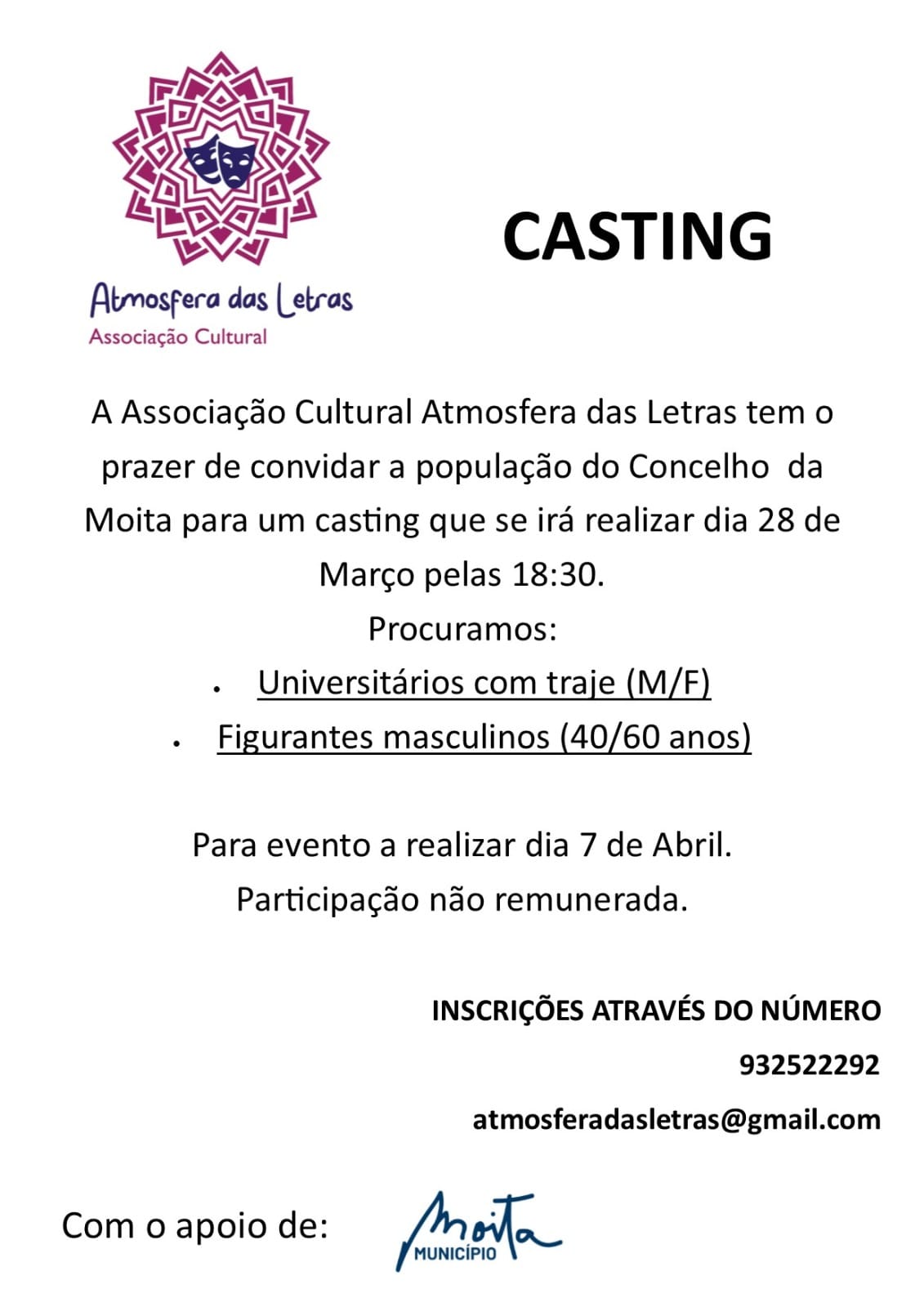 Casting - Associação Cultural Atmosfera das Letras