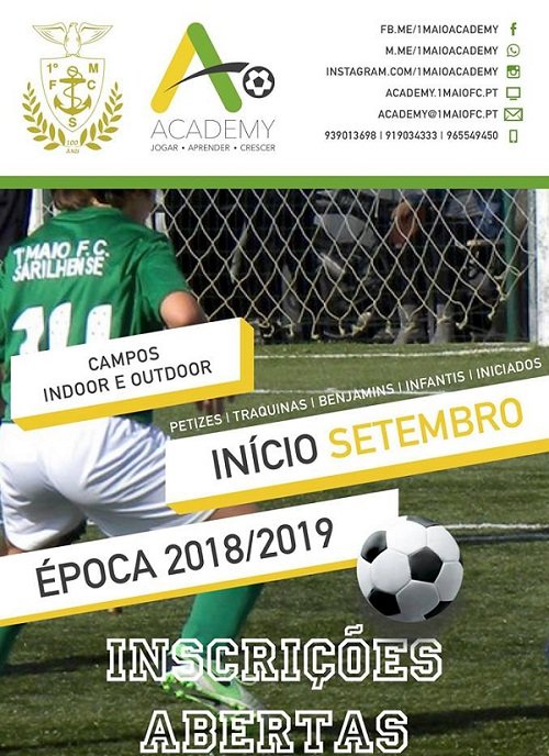 Encontram-se abertas as inscrições para a nova época de futebol no 1º Maio Futebol Clube Sarilhense.