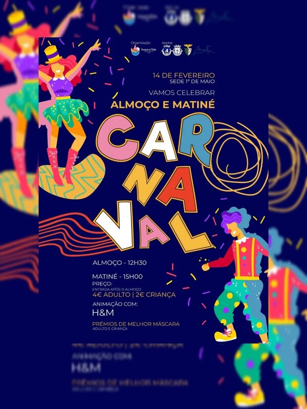 - 18h00 - Carnaval TASSE, no Palacete em Alhos Vedros, organizado pela Fundação Sta. Rafaela Maria