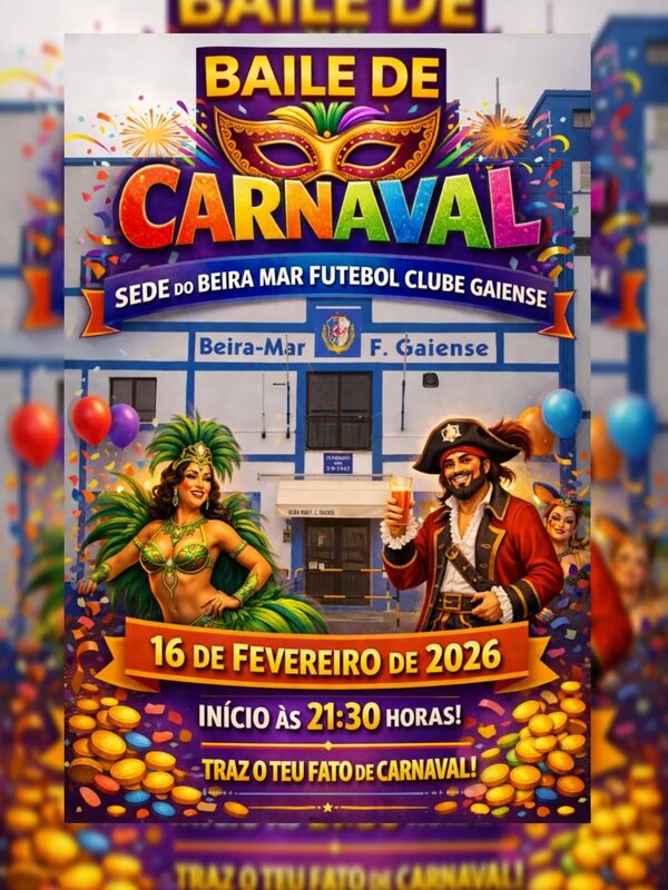- Baile de Carnaval no salão da sede social, organizado pelo Beira Mar Futebol Clube Gaiense