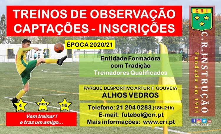 Clube Recreio e Instrução - Inscrições abertas para a próxima época de 2020/21