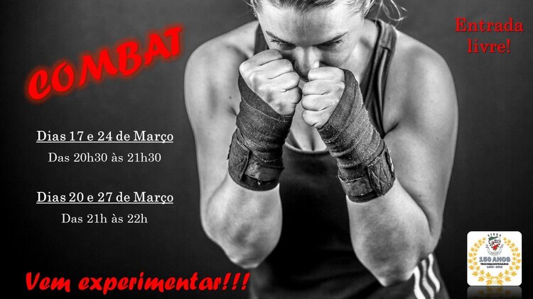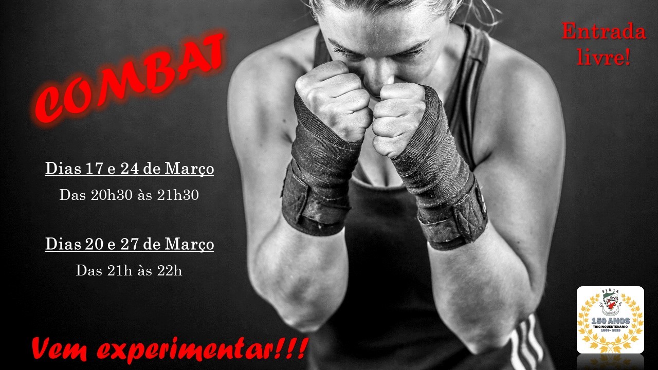 Nos próximos dias 17, 20, 24 e 27 de março, vamos ter aulas abertas de combat.