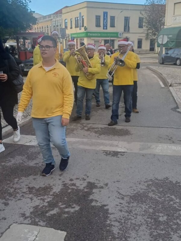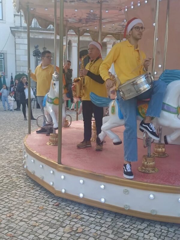 Registos da animação itinerante pela Charanga do Rosário, no dia 6 de dezembro, no âmbito do Mercado de Natal na Moita.
